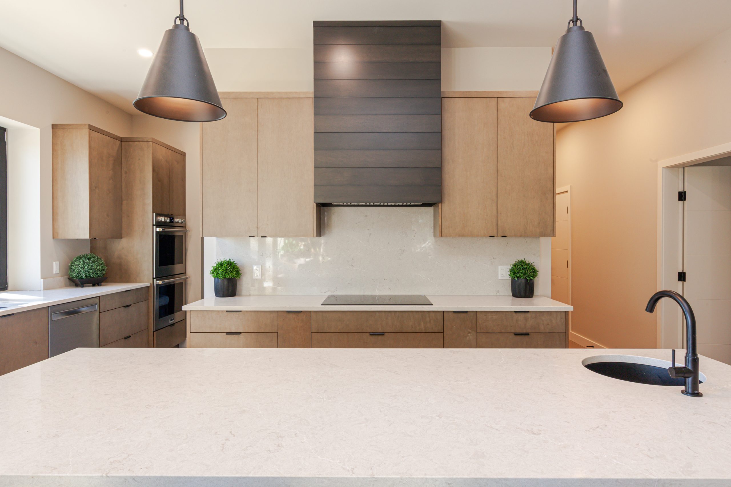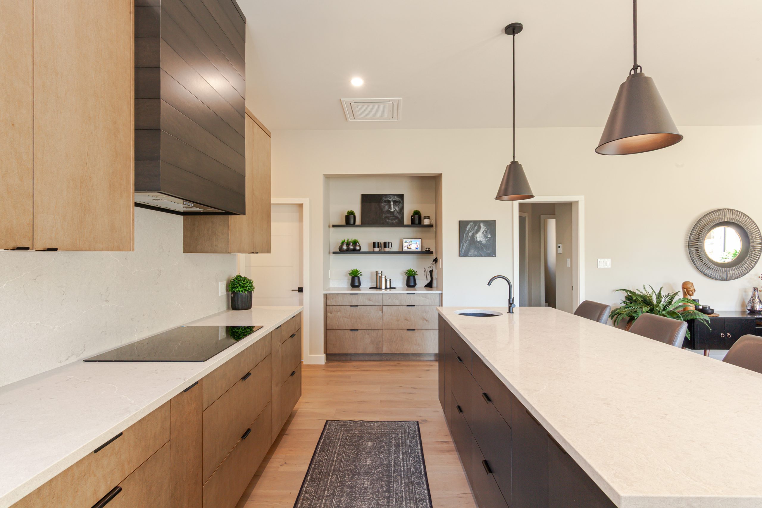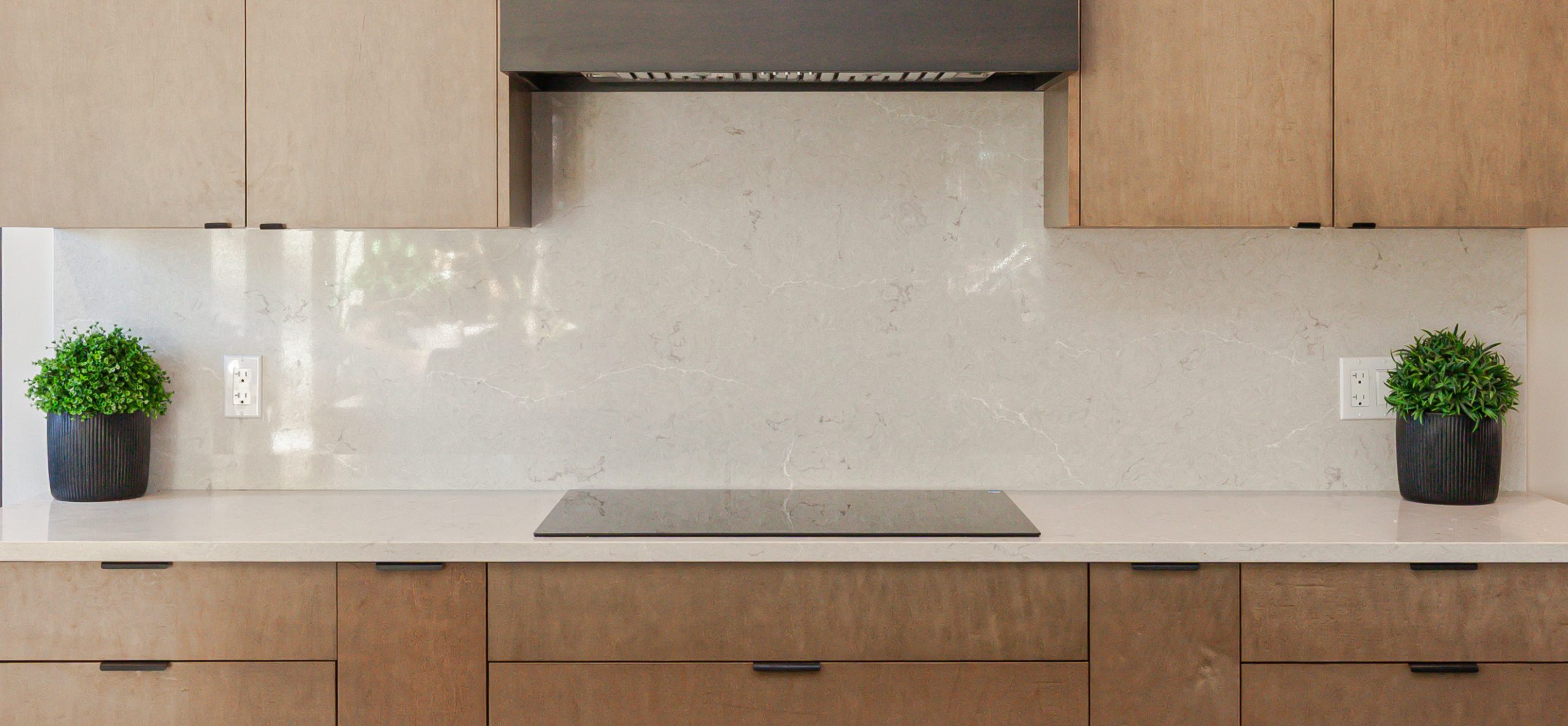 Our clients chose quartz countertops with a full-height quartz backsplash, offering a seamless, low-maintenance surface that’s both durable and visually striking.